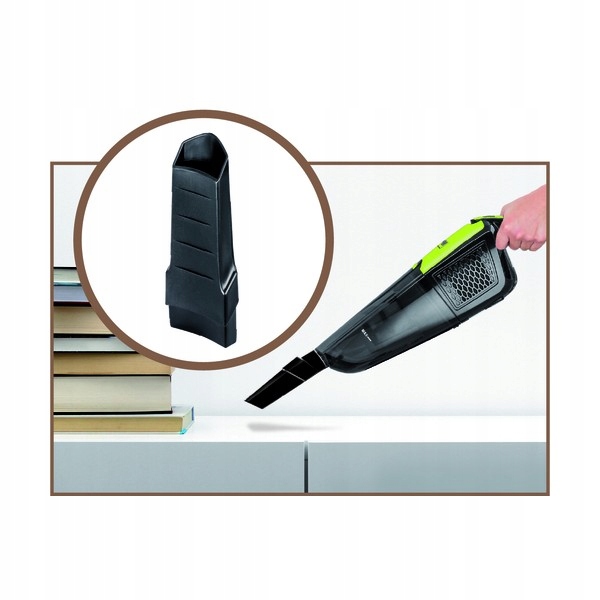 2 dodatkowe akcesoria w bazie ładującej (szczotka szczelinowa i szczotka do żaluzji)