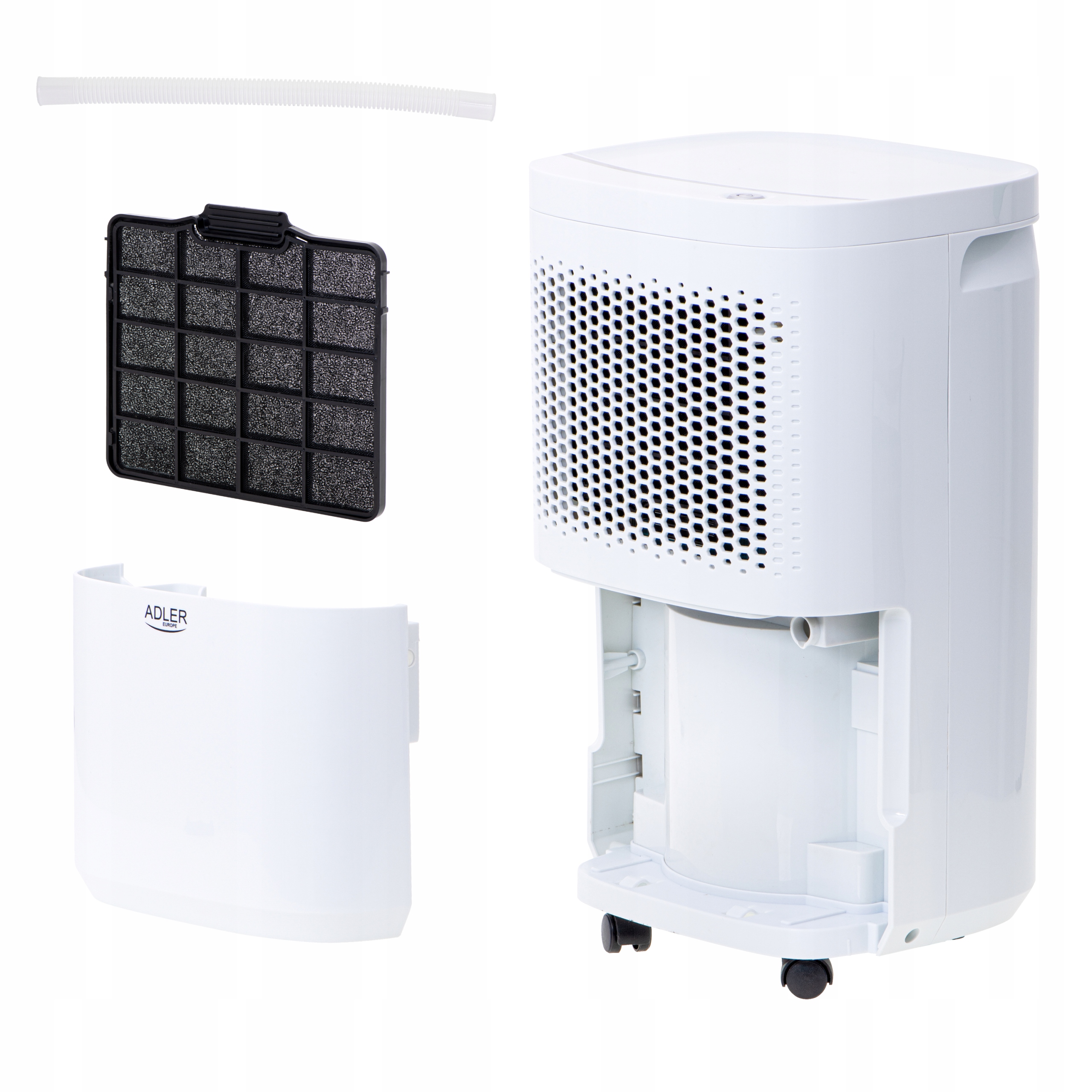 Osuszacz ma estetyczny wygląd, stosunkowo niewielkie rozmiary i kółka uławiające transport. Dzięki zastosowaniu dwóch filtrów (pyłkowy i węglowy) urządzenie osuszając pomieszczenie jednocześnie oczyszcza powietrze. Produkt przeznaczony do pomieszczeń o kubaturze do 60m3 i temperaturze 5-32°C. W produkcji zastosowano przyjezdny dla środowiska czynnik chłodzący R290. Urządzenie może pracować również w trybie ciągłym dzięki odprowadzania wody wężykiem bezpośrednio do kanalizacji zamiast do wbudowanego zbiornika.