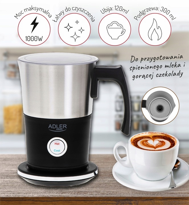Spieniacz do mleka ADLER AD 4497 to urządzenie, dzięki któremu samodzielnie przygotujemy piankę do…