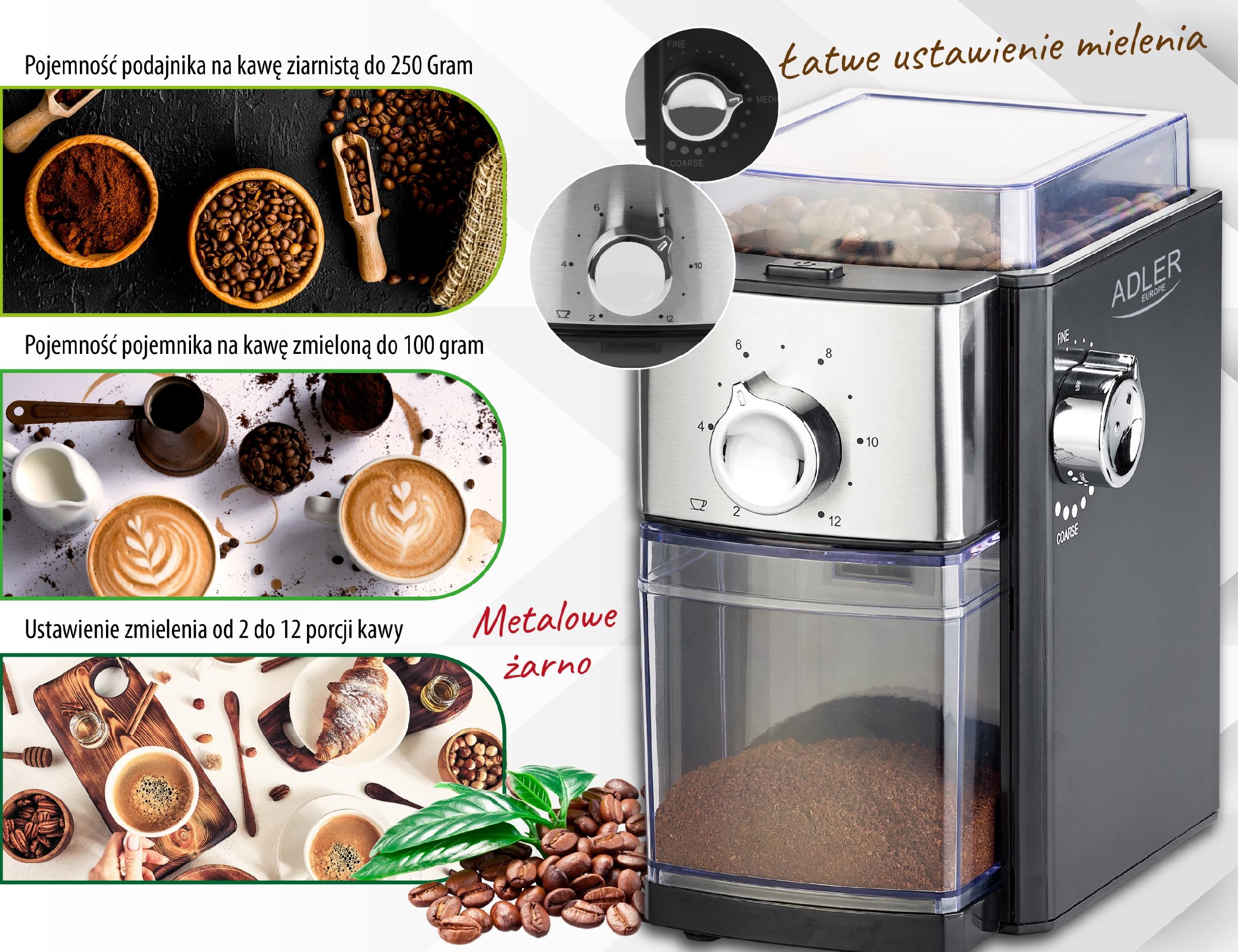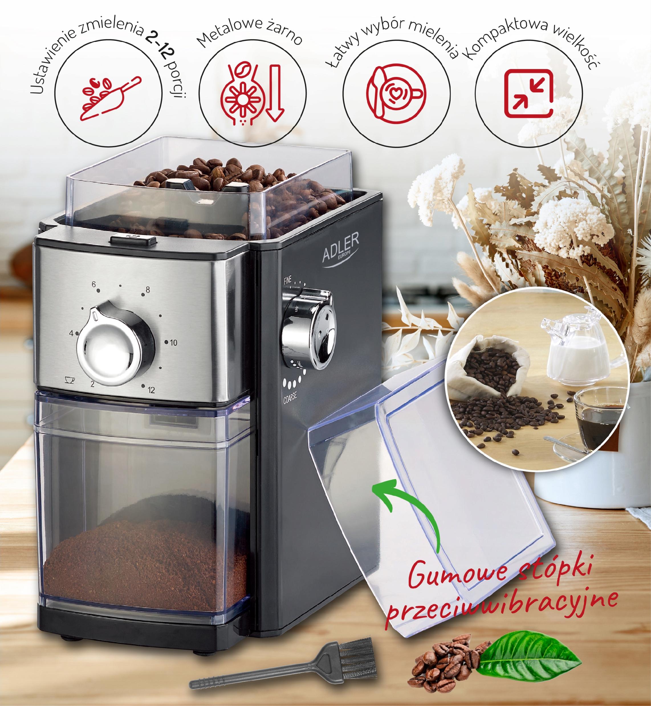 Adler AD 4448 Żarnowy młynek do kawy Żarnowy młynek do kawy Pojemność podajnika na…