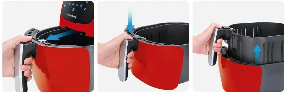 Można w nim podgrzewać, piec, smażyć i grillować, jest więc uniwersalnym urządzeniem kuchennym pomagającym w codziennym przyrządzaniu zdrowych i dietetycznych posiłków. Obudowa urządzenia wykonana została z wytrzymałego tworzywa sztucznego w eleganckim czerwonym kolorze. Frytkownicę wyposażono w pokryty powłoką nieprzywierającą wkład do smażenia umożliwiające przygotowanie różnorodnych potraw. W urządzeniu można przygotować całego kurczaka. Misę można myć w zmywarce. Na panelu sterowania umieszczono pokrętło regulacji temperatury w zakresie od 80 do 200°C oraz pokrętło timera umożliwiające ustawienie czasu pracy w zakresie od 0 do 60 min. Element grzewczy o mocy 1800 W pozwala szybko osiągnąć wymaganą temperaturę, a termostat utrzyma ją na zadanym poziomie.
