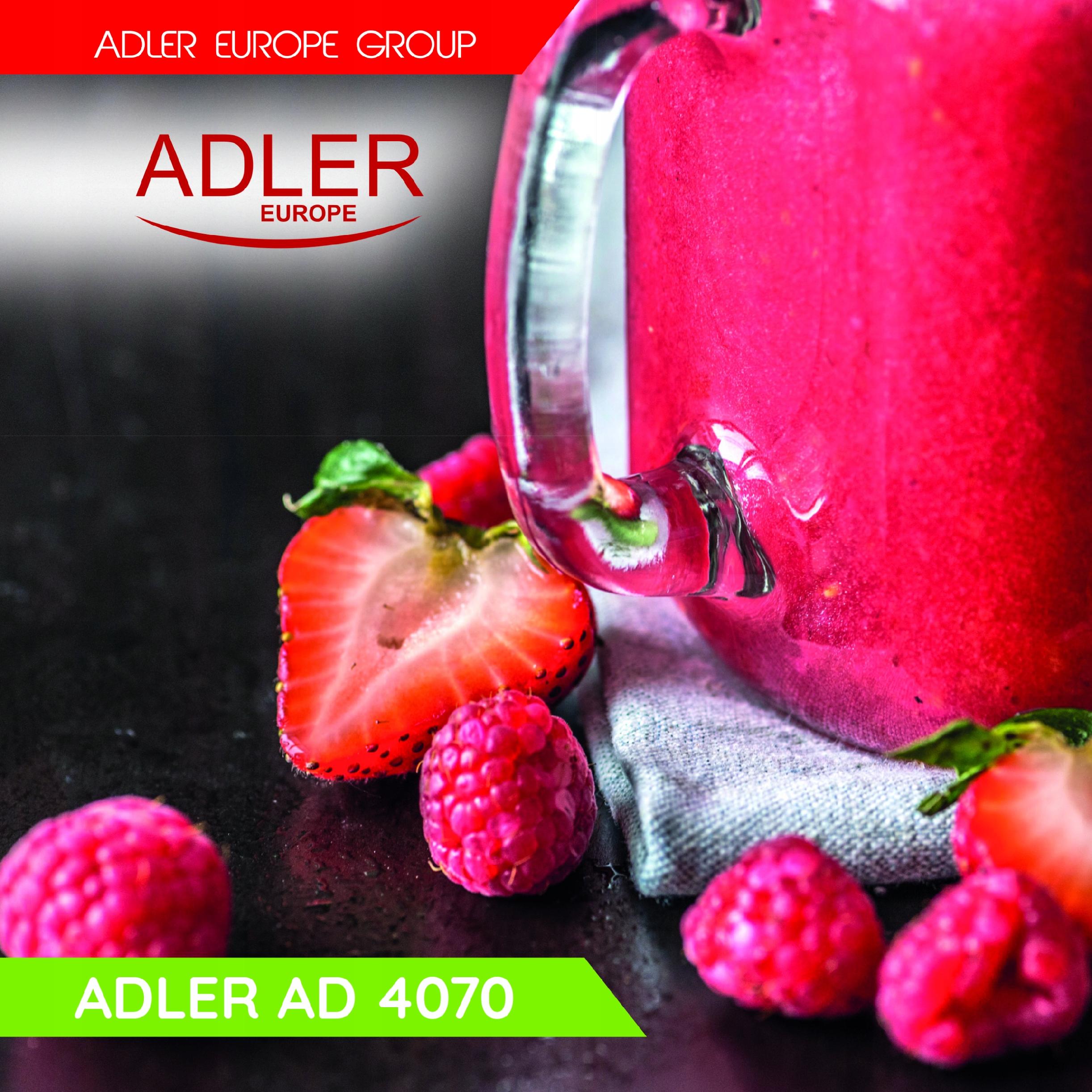 Adler AD 4070 Blender kielichowy SPECYFIKACJA: 5 Poziomów prędkości Funkcja „Pulse” Wygodny szklany dzbanek…