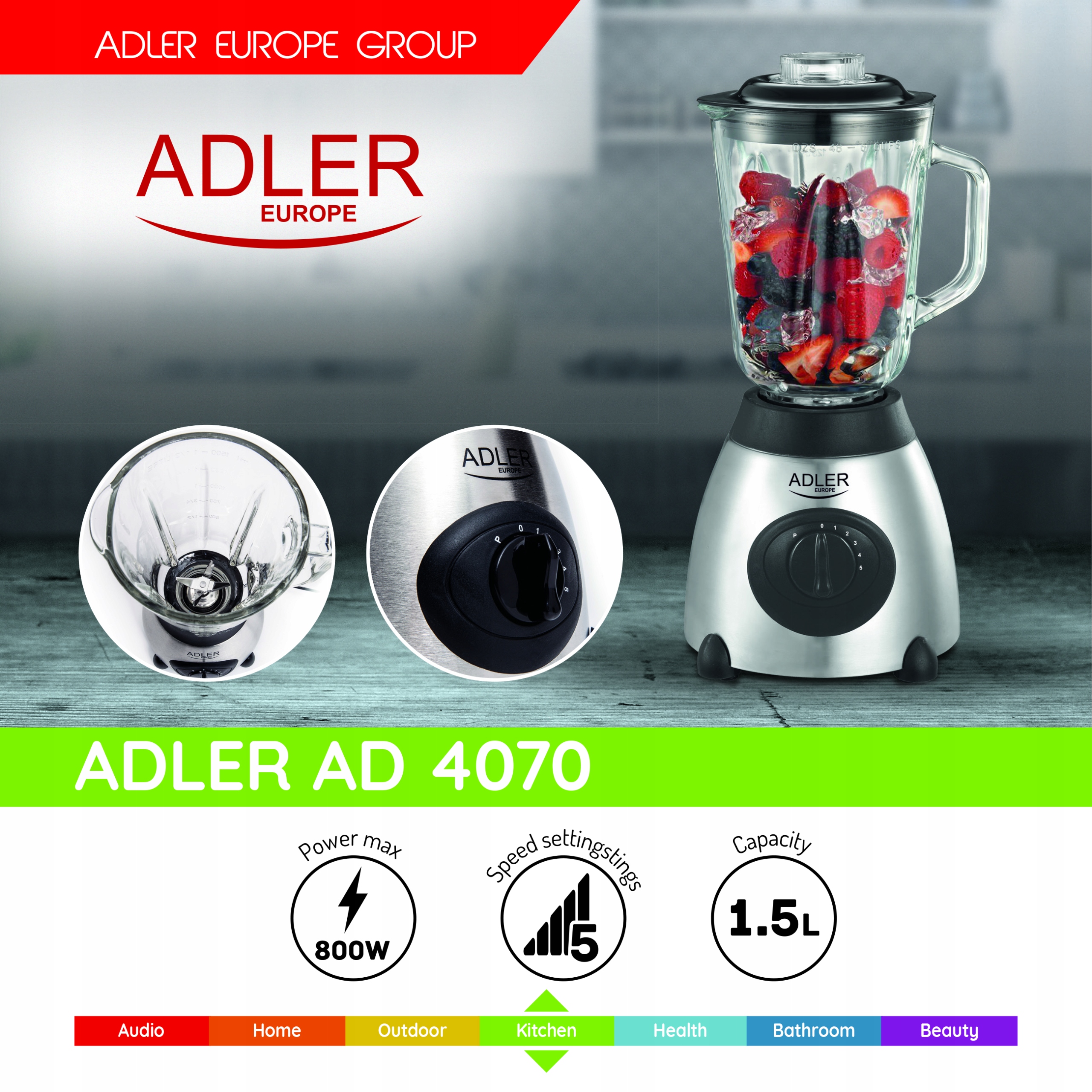 ADLER Blender kielichowy szklany 1,5L 800W AD4070