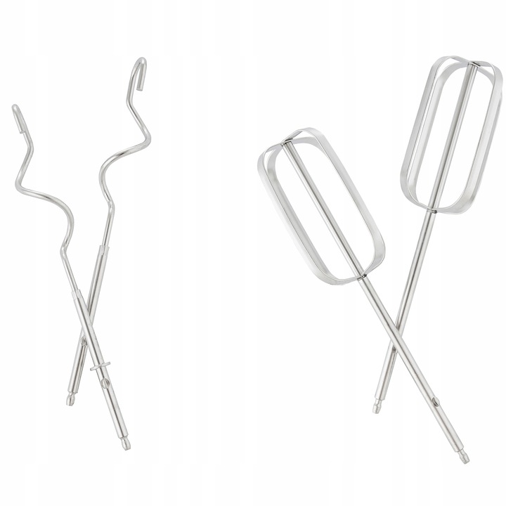 - Dwa mieszadła i dwie trzepaczki do ciasta wykonane ze stali nierdzewnej