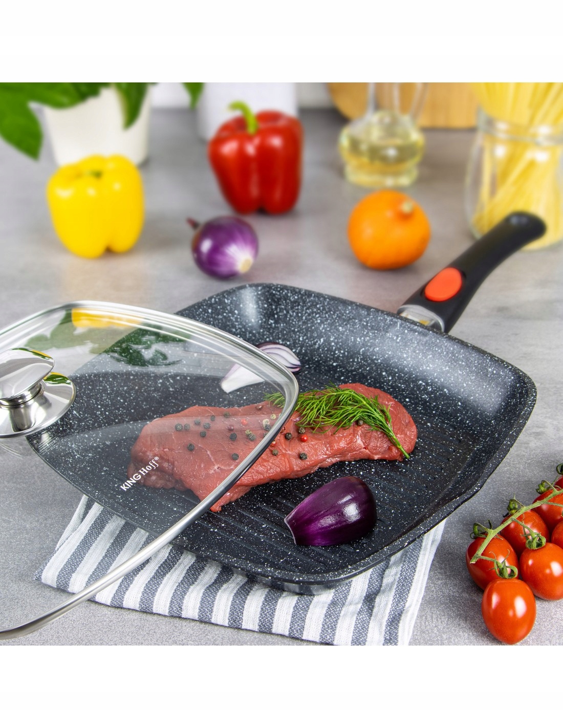 Patelnia Grillowa KAMIENNA z Pokrywką 24 INDUKCJA