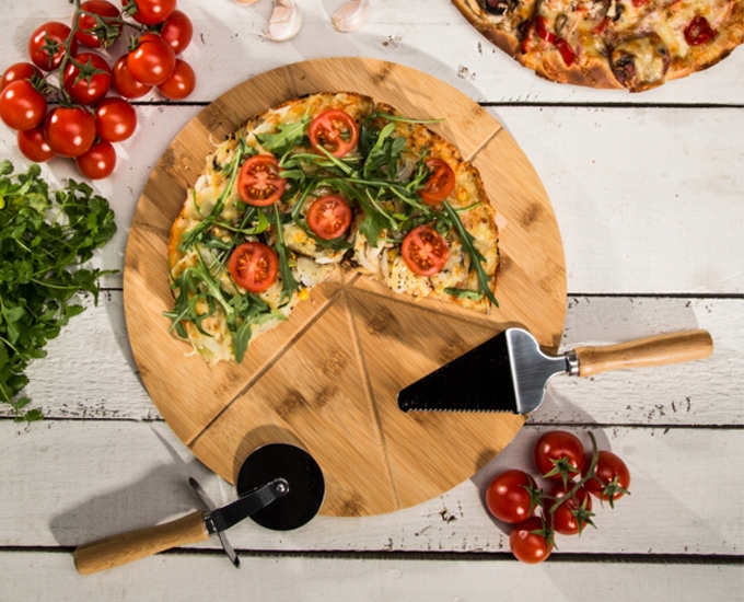 Nóż do pizzy KH1556 Wykonany ze stali nierdzewnej z drewnianym ergonomicznym uchwytem – Posiada…