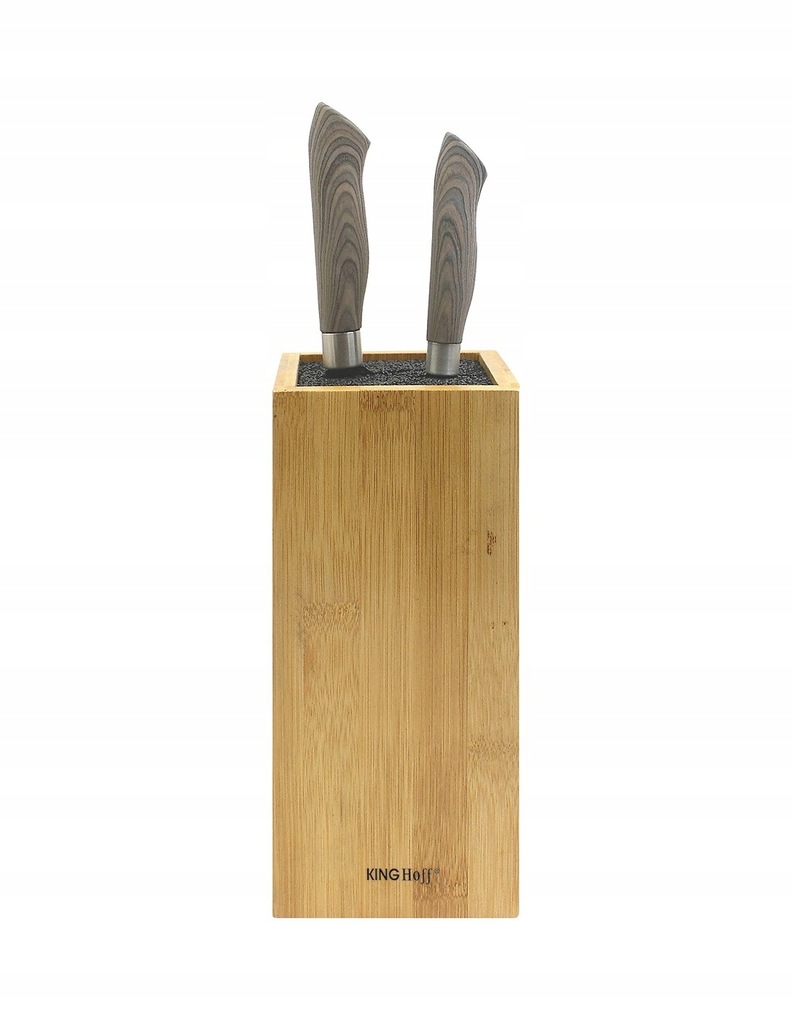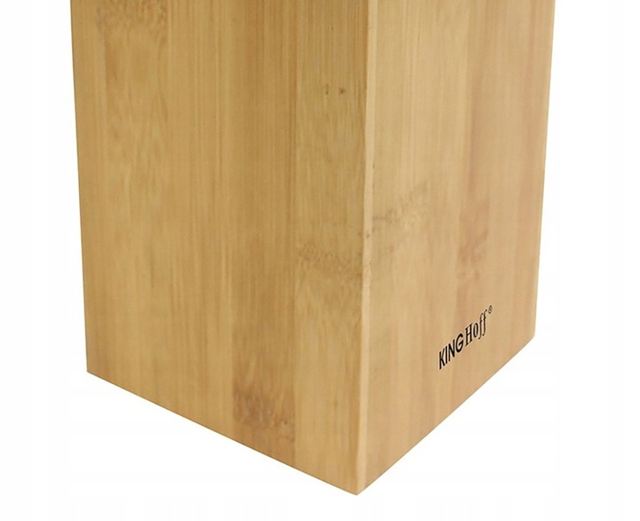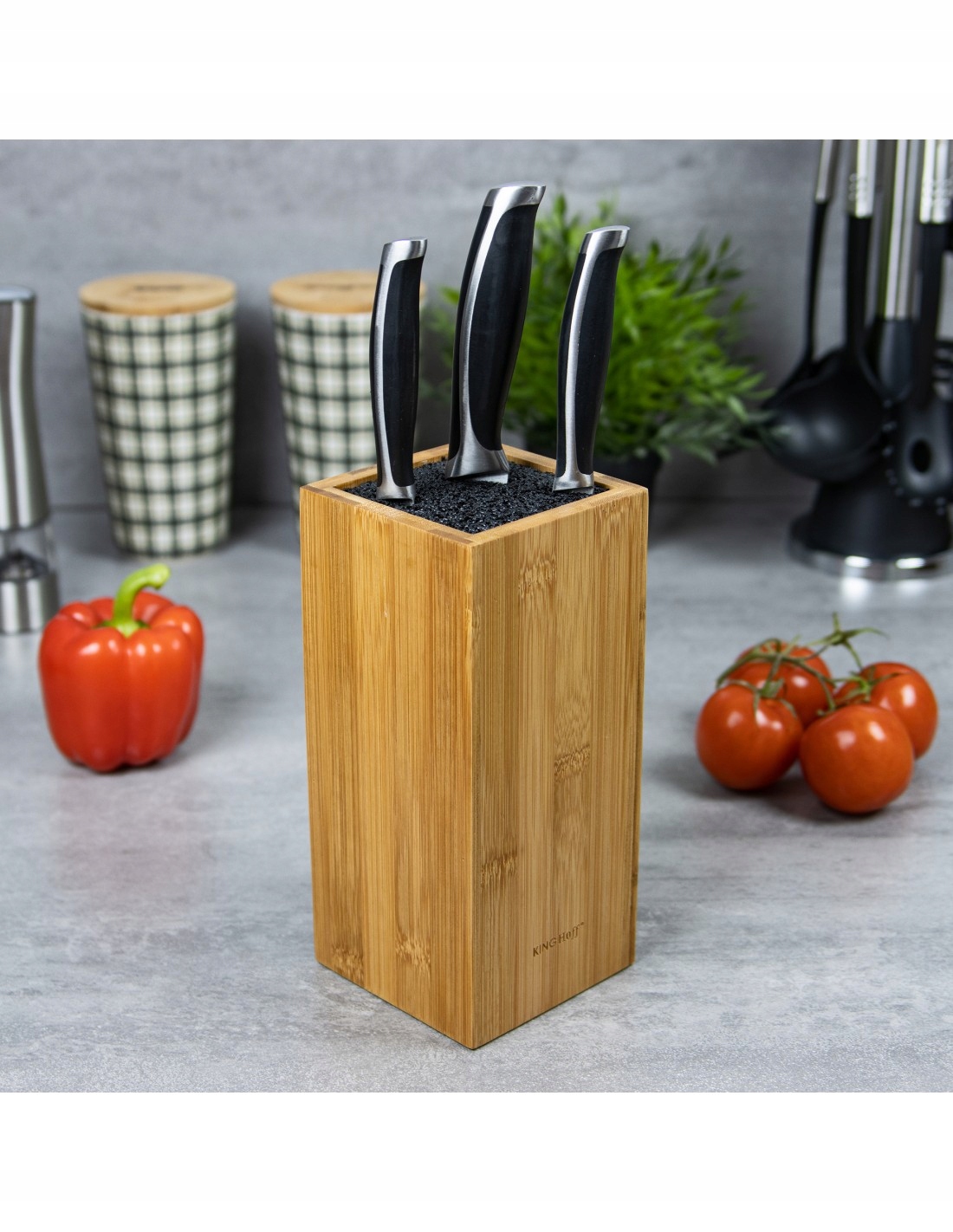Uniwersalny blok do noży wykonany z drewna bambusowego. Wypełnienie stanowią pręciki z tworzywa sztucznego, tzw. trawa. Taki rodzaj wypełnienia pozwala na odkładanie noża w dowolne miejsce w bloku. Można używać do wszystkich rodzajów noży. Wkład można wyjąć, a stojak umyć. Nadmiar ewentualnej wody odcieknie przez specjalne otwory w dnie bloku. Zalecane jest jednak wkładanie suchych noży w blok.