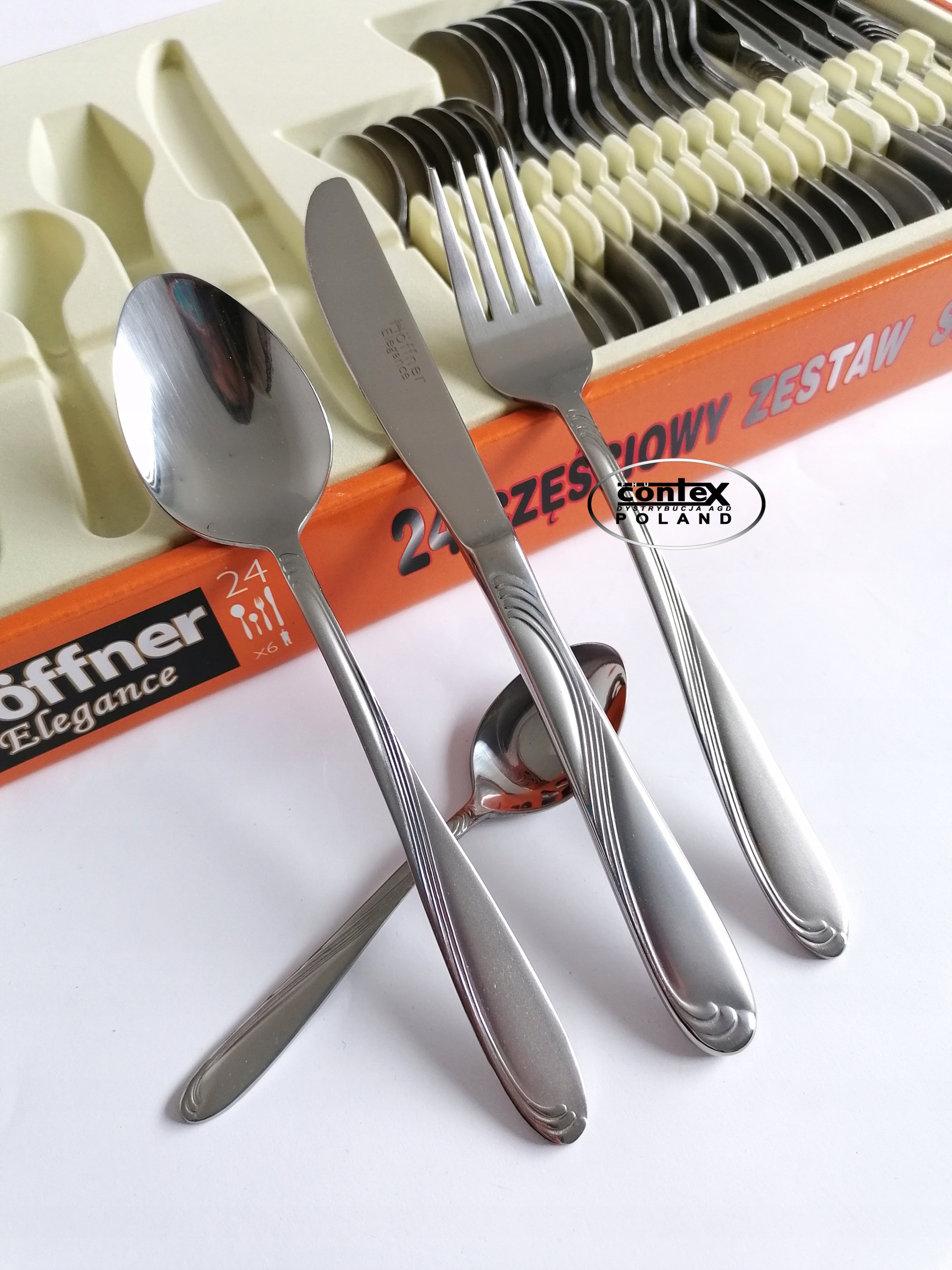 HOFFNER SZTUĆCE ZESTAW 24 EL POŁYSK KOMPLET WZORY