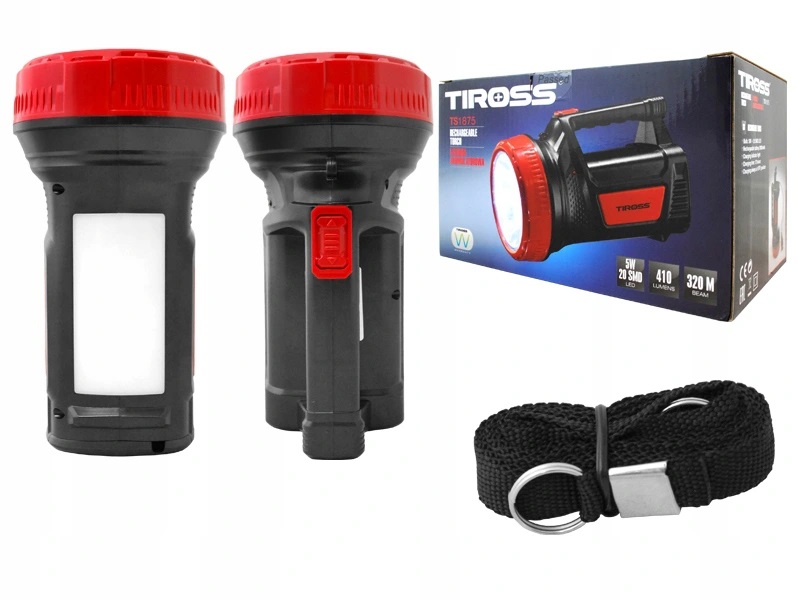 Tiross TS1875 to ekonomiczna 2-funkcyjna latarka akumulatorowa. Dzięki swojej 5W żarówce może pełnić rolę szperacza o zasięgu 320 metrów lub być stojącą lampą kempingową rozświetlającą przestrzeń do okoła przy pomocy 20 diod SMD LED. Poziom jasności rzędu 410 lumenów z pewnością zadowoli wymagających użytkowników. Te dwa przydatne tryby czynią z latarki urządzenie bardzo uniwersalne i przydatne w wielu sytuacjach.